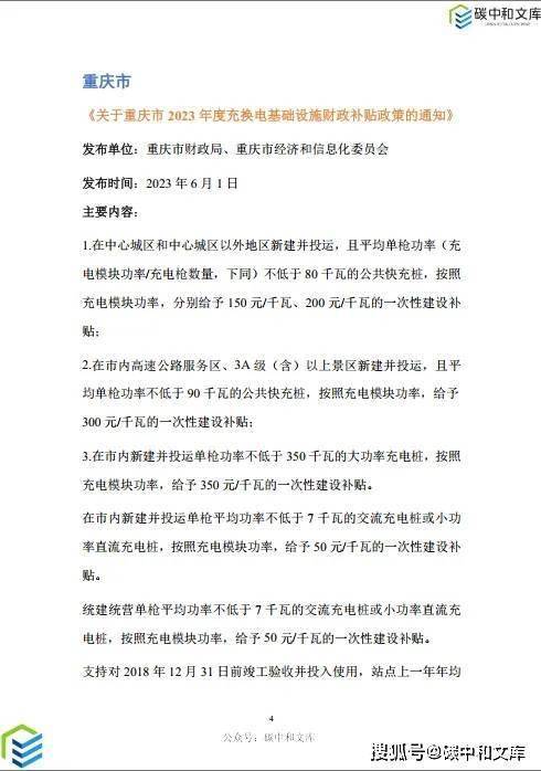 重慶市對(duì)對(duì)平均單槍功率不低于350千瓦的大功率充電樁給予400元/千瓦;
