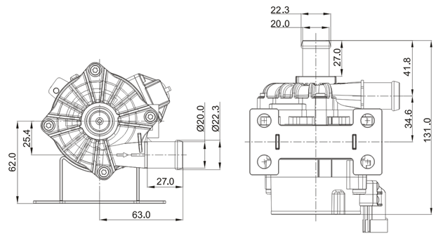 汽車電子泵標(biāo)準(zhǔn)的汽車連接20mm進(jìn)出水口和專業(yè)的防水端子,水泵可以快速有效的整合到汽車中。-40°C~125°C 的工作溫度,即使在極其惡劣的環(huán)境條件下,水泵也能為汽車提供高效的工作環(huán)境。極性保護(hù)可以保護(hù)泵不受正負(fù)極接錯(cuò)而燒壞的影響。