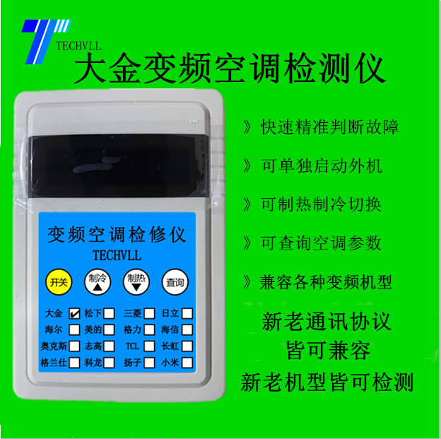大金變頻空調檢測儀,可以兼容大金新老通訊協(xié)議,可以檢測大金機型。一鍵啟動外機、檢測故障、啟動外機、中高頻設定功能皆可以實現(xiàn)。下單請前往淘寶“青島泰科偉業(yè)官方直營店”或撥打電話(17852926608)進行咨詢,期待與您合作!