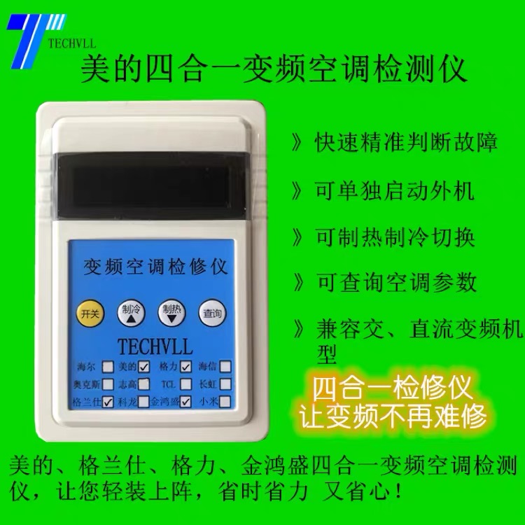 TK[V3.0]-MGGC 變頻空調(diào)檢測(cè)儀是一款多合一的變頻空調(diào)檢測(cè)儀,該檢測(cè)儀可以檢測(cè)美的、格力、格蘭仕、創(chuàng)維四大品牌的變頻空調(diào),具有與變頻外機(jī)板強(qiáng)電通訊功能,可以獨(dú)立啟動(dòng)外機(jī),可以精準(zhǔn)查詢(xún)外機(jī)故障并進(jìn)行顯示,可以查詢(xún)空調(diào)狀態(tài)信息并進(jìn)行顯示,該檢測(cè)儀兼容幾乎所有的所含品牌變頻空調(diào)機(jī)型,檢測(cè)儀自動(dòng)識(shí)別各品牌空調(diào),不需要人為設(shè)置。